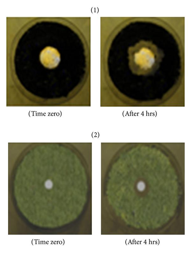 Apart from using additives with anti-fungal properties, another method of controlling phytopathogenic strains of fungus is to introduce natural occurring fungus to inhibit the growth of others. Trichoderma viride is a mold and a natural biofungicide which has been tested for seed and soil treatment to suppress other fungal pathogens. Spasova et al (2011) has successfully electrospun nanofibrous mat containing chitosan and Trichoderma viride spores. The resultant mat is able to inhibit the growth of phytopathogenic strains of fungus such as Fusarium and Alternaria.